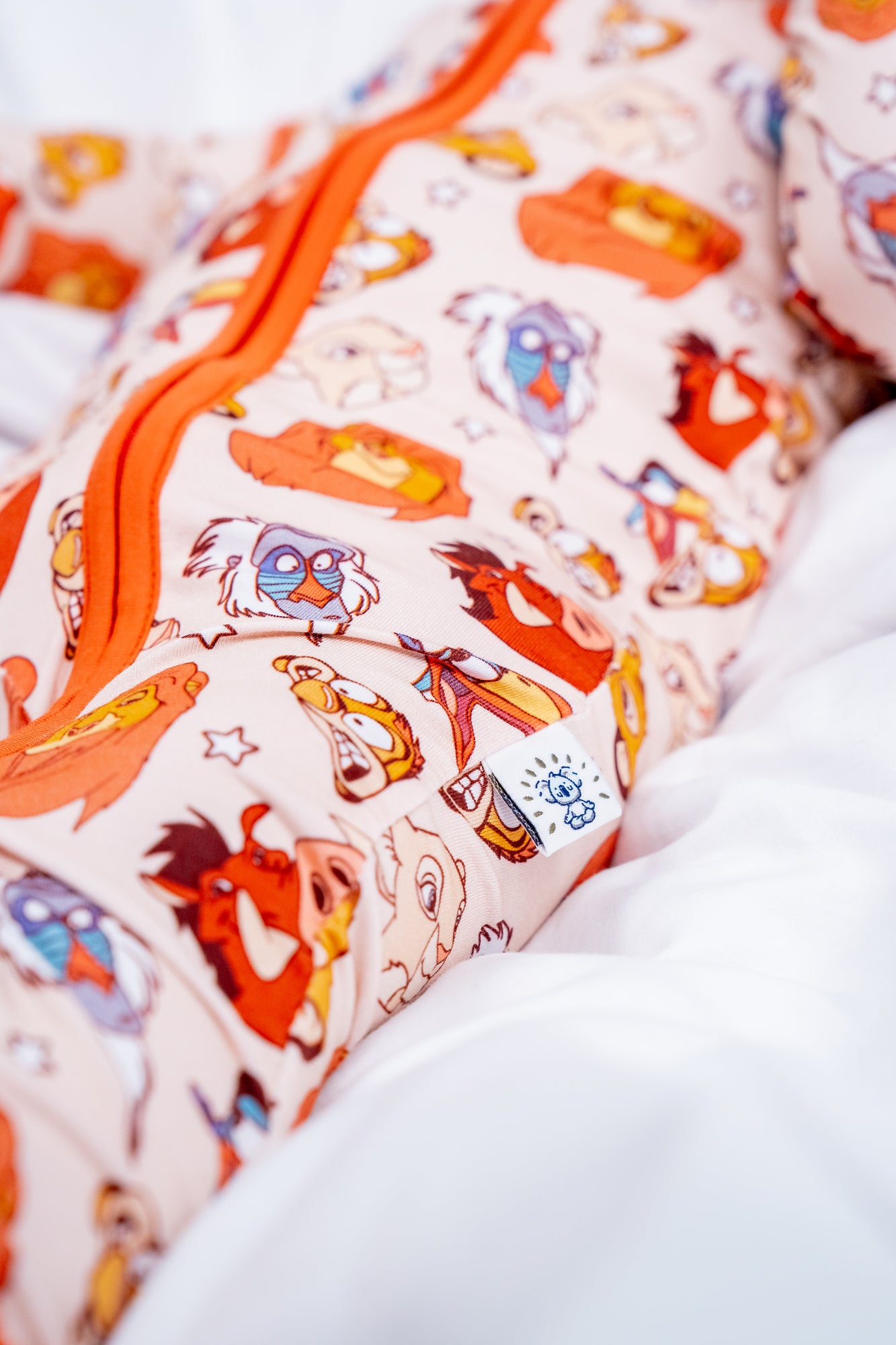 Step into the wild with our Hakuna Matata Zippy, featuring a delightful Lion King pattern with Simba, Nala, and friends. This romper is perfect for little adventurers who love the magic of the Pride Lands. With its vibrant design, it brings the carefree spirit of "no worries" to playtime, making every day a roaring adventure!